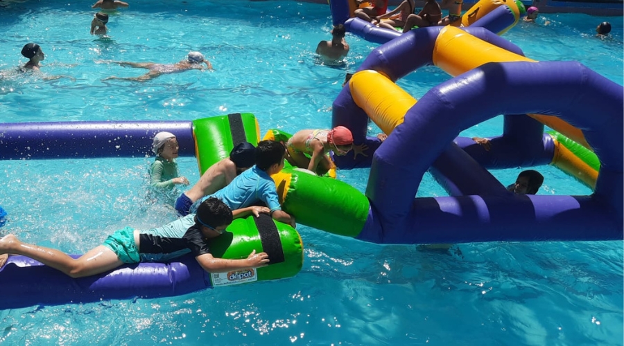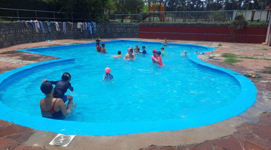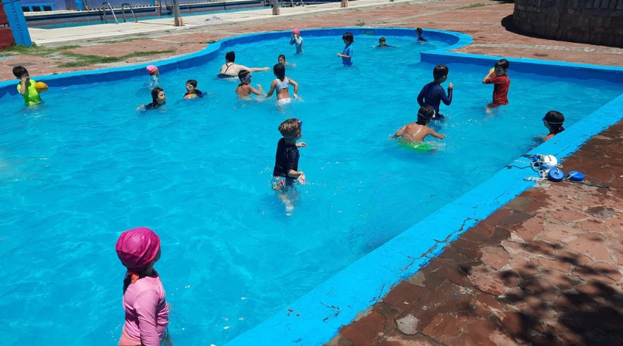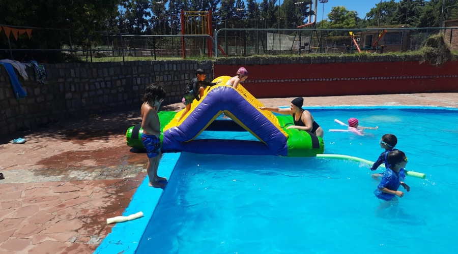 Contamos con dos piletas, una pequeña para niños/as de 4 y 5 años de edad y una pileta grande para niños/as de 6 a 13 años de edad, ambas piletas están supervisadas por guardavidas y profesores, en la pileta realizamos diferentes actividades con: